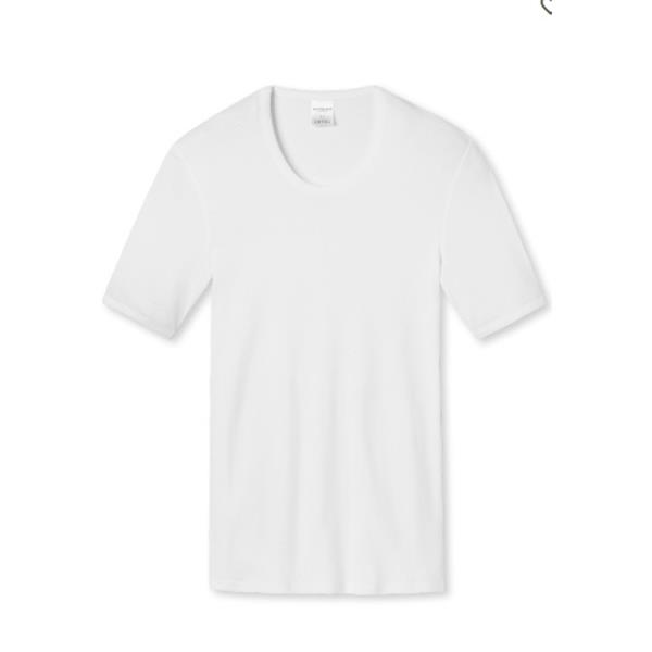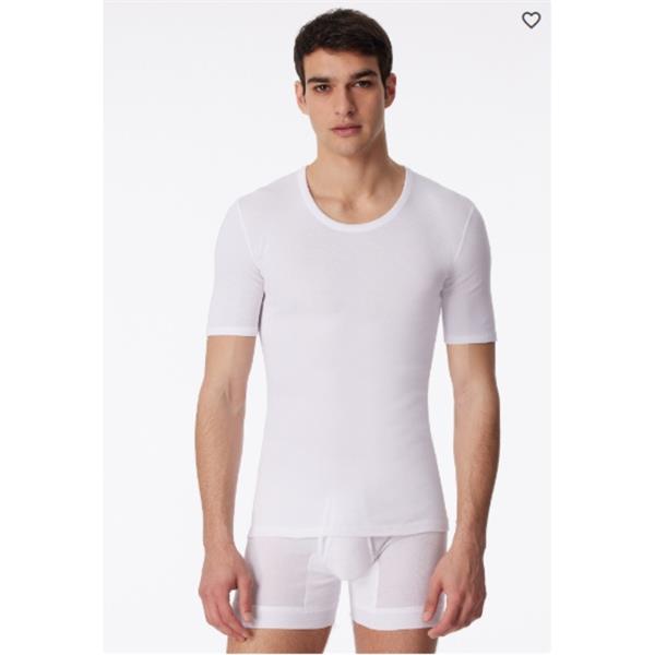 Discover the exceptional comfort and timeless style of the Schiesser T-Shirt Fine Rib Cotton Essentials White. This white men's tee is essential for any wardrobe, combining quality craftsmanship with an elegant aesthetic.